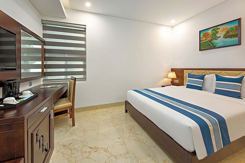 Double deluxe is 323 square feet and includes either a king-size bed 150-183 width or a double bed 131-150 width.
